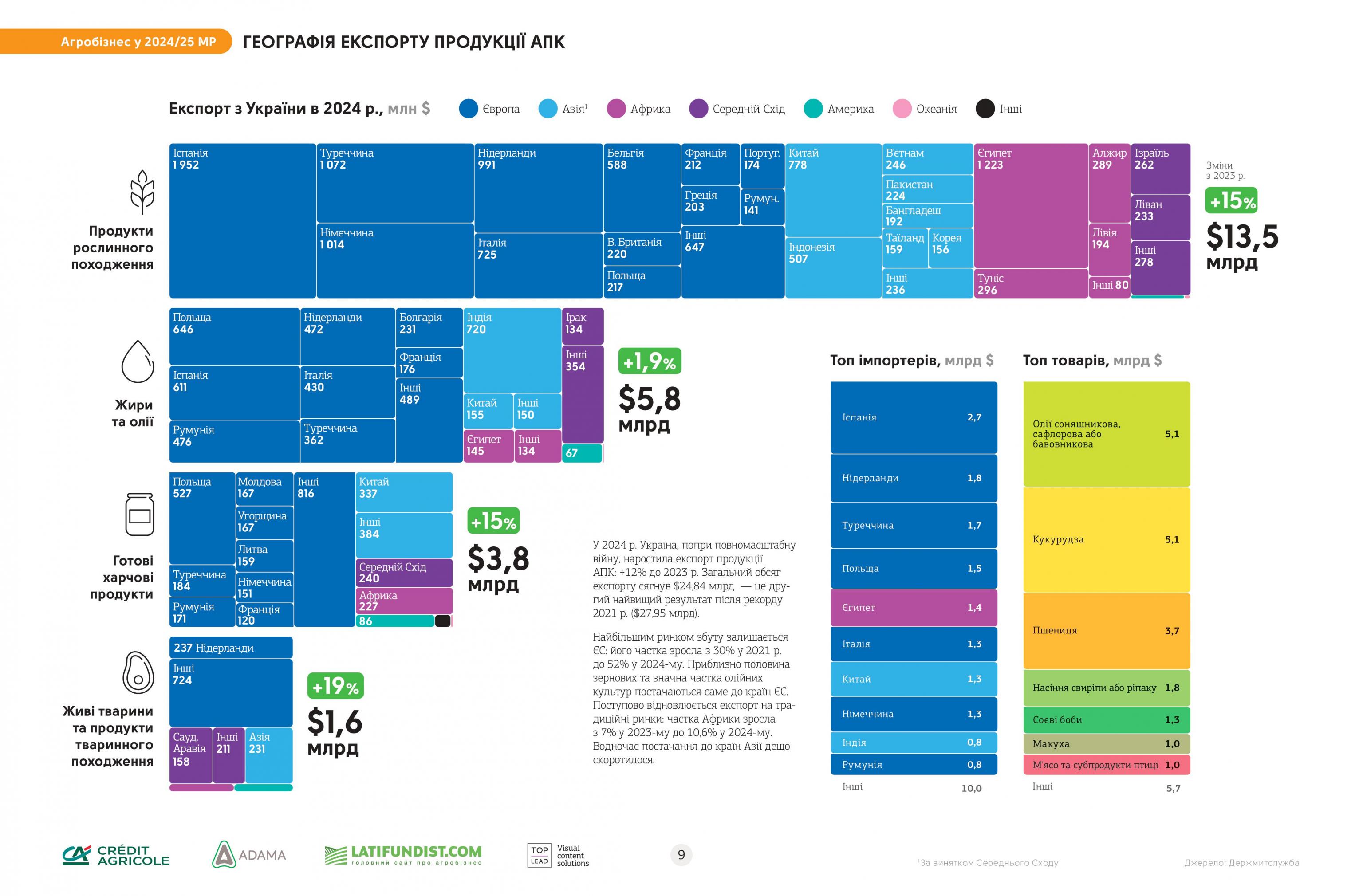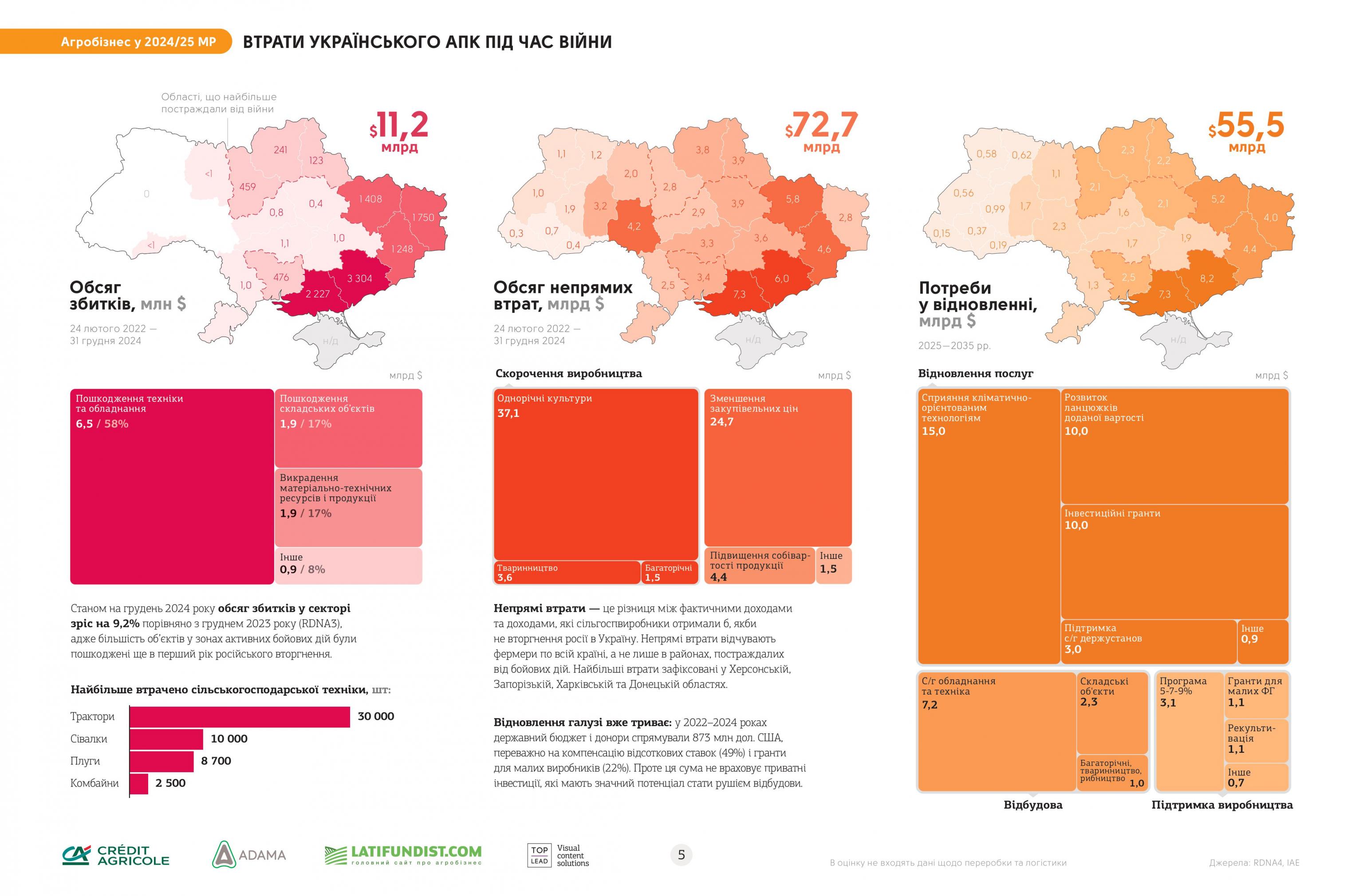 В Україні презентували щорічний інфобук Агробізнес України у 2024/25 МР. Над його розробкою працювали фахівці агро медіа холдингу Latifundist Media та агенції візуальних комунікацій Top Lead за постійної підтримки Креді Агріколь Банку, а також нового партнера – компанії ADAMA.У ньому показано, як адаптується агросектор України на четвертий рік повномасштабної війни.