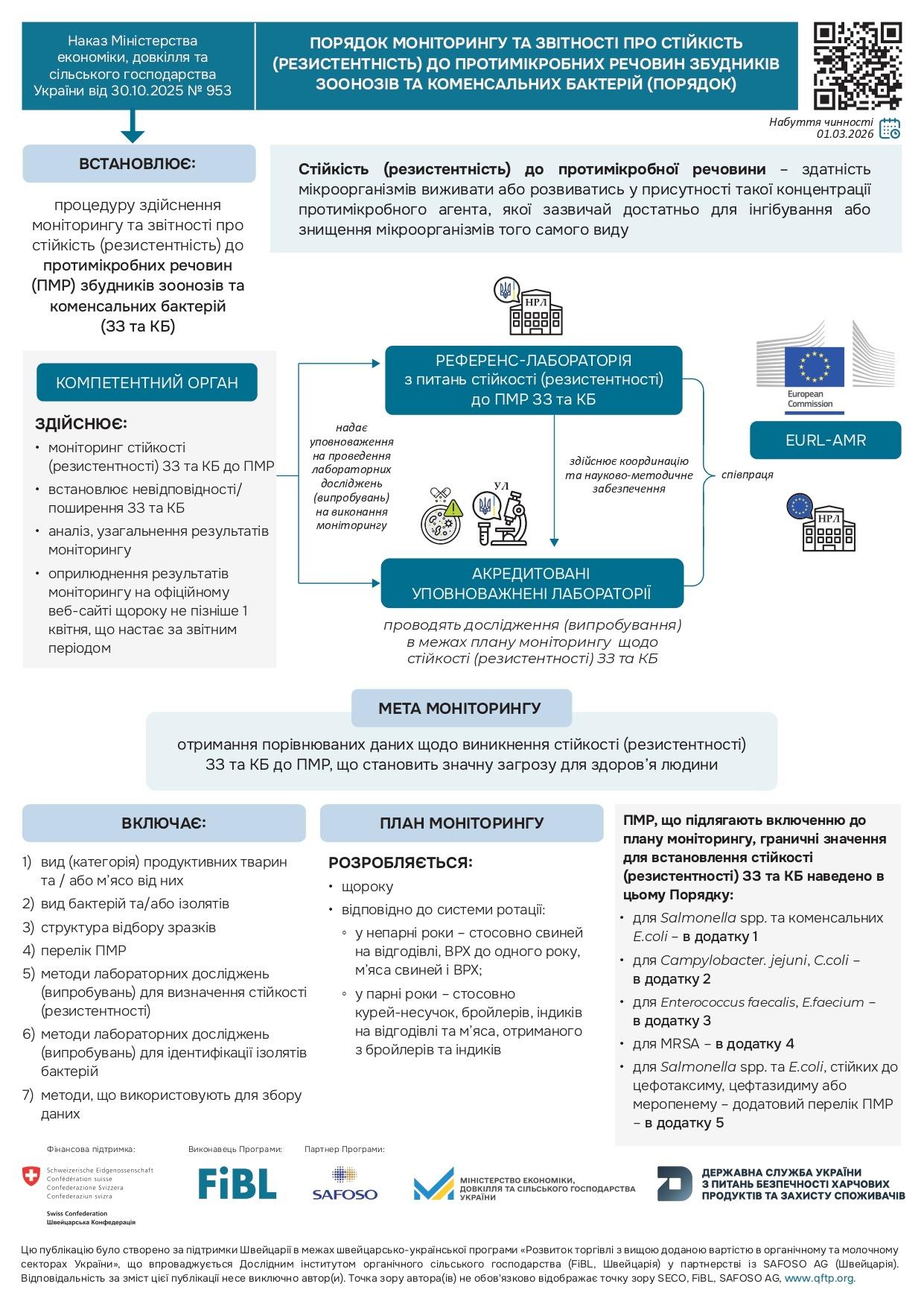 Порядок затверджено наказом Міністерства економіки. Мета — отримання порівнюваних даних щодо виникнення стійкості збудників зоонозів та коменсальних бактерій до протимікробних речовин, що становить загрозу для здоров’я людини.