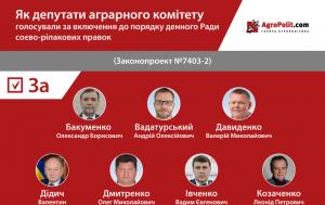 Результати голосування аграрних депутатів за включення до порядку денного Ради соєво-ріпакових правок...