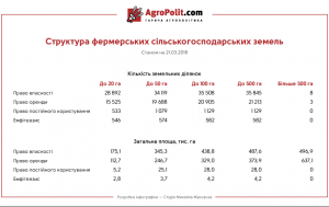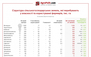 Структура сільськогосподарських земель, які перебувають у власності та користуванні фермерів...