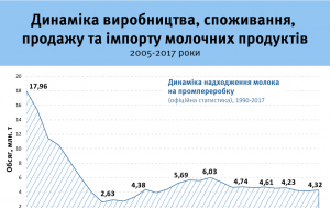 Динаміка виробництва, споживання, продажу та імпорту молочних продуктів 2005-2017 роки...